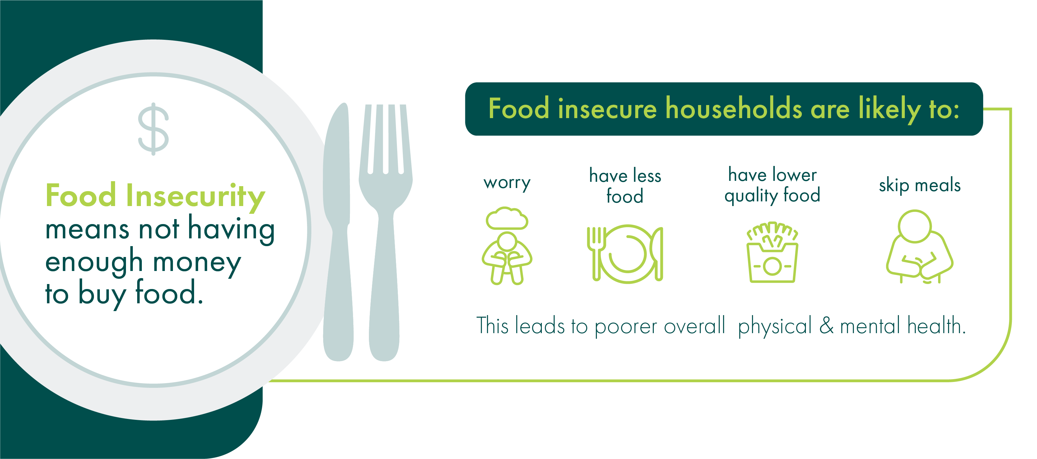 - Children and adults living in food insecure households are more likely to suffer from physical and mental health conditions, leading to greater need for healthcare services, higher rates of hospitalization, and elevated risk of premature death1,3.